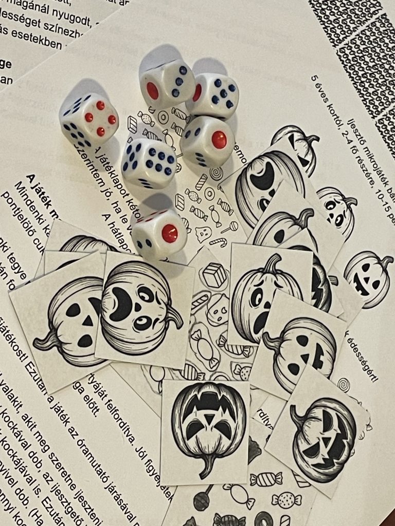 Csináltam megint egy ingyenesen letölthető mikrojátékot azoknak, akik szívesen társasoznak szezonhoz kapcsolódó dolgokkal. Ez egy szerencsekísértős, ijesztgetős itt a piros hol a piros típusú játék, ami megfigyelést és memóriát igényel. Bizony. Ha nem hiszed, akkor töltsd le és olvasd el a szabályt. 10-15 perc a játékidő, 5-6 éves kortól simán mehet, 2-4 fővel működik jól, talán ketten a legjobb, de az biztos, hogy négyen nehezebb.